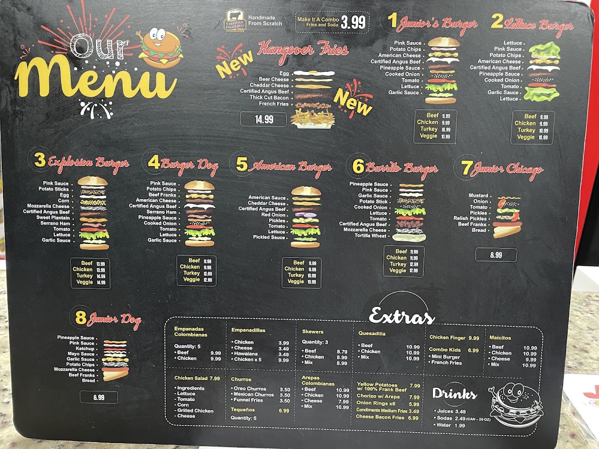 Welcome to Junior Colombian Burger, located at 5389 S Kirkman Rd, Orlando, FL. This hidden gem is a must-visit for burger enthusiasts seeking authentic Colombian flavors. The menu showcases a variety of delectable options, with the Junior Beef Burger and the renowned Explosion Burger standing out as fan favorites.